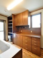 オリジナルとなれば、ライフスタイルに合わせて、タオル類の収納コーナーなど自由につくる事が可能です。